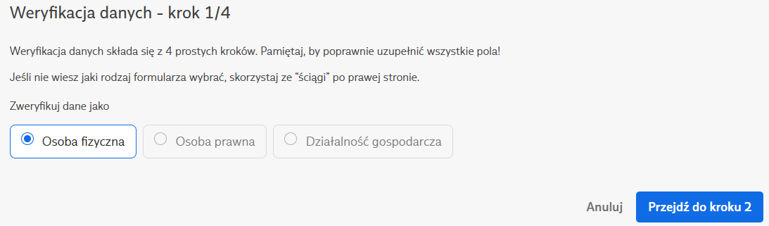 - Dodatkowa weryfikacja jako osoba prawna