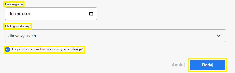 Ważne! Odcinki dodane z tą samą datą będą wyświetlane wg kolejności uploadu.