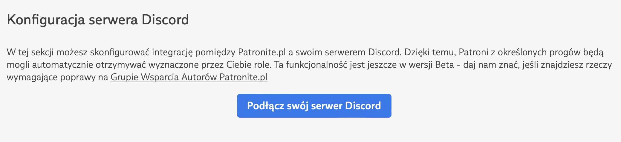 2. Połączyć swoje konto Discord z kontem Patronite: Połącznie z Discord.